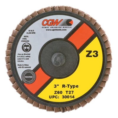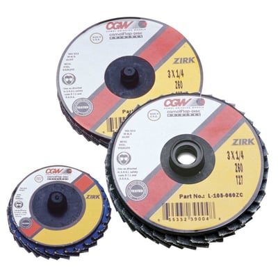 Loading product details...Flap Discs, Mini, Zirconia, Quick Change, Type R, 3 in, 60 Grit, 18,000 rpm