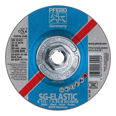 Loading product details...Premium Performance SG-INOX Wheel, Type 27, 4-1/2 in dia, 1/4 Thick, 5/8 in-11 Arbor, 30 Grit, Aluminum Oxide