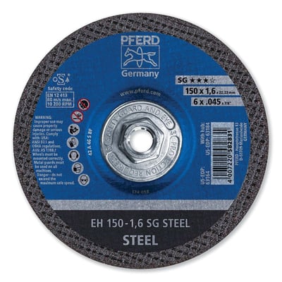 Loading product details...SG Type 27 Depressed Center Cut-Off Wheel, 6 in Dia x 0.045 in Thk, 5/8-11, 46 Grit, Aluminum Oxide