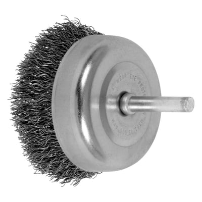 Loading product details...Stem Mounted Cup Brushes, 2 1/2 in Dia., 0.012 in, Carbon Steel Wire