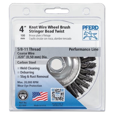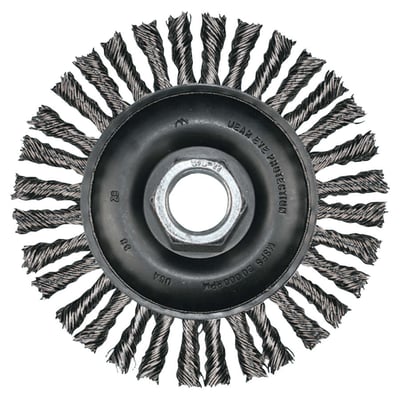 Loading product details...Stringer Bead Twist Knot Wheel, 4 7/8 D x 3/16 W, .02 Carbon Steel, 48 Knots