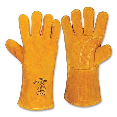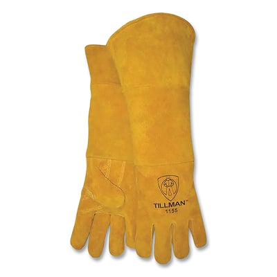 Loading product details...Stick Welding Gloves, 1015, Slightly Select Shoulder Split Cowhide Palm/BOH/Cuff, Lg, Bourbon Brn, 14 in L Cuff