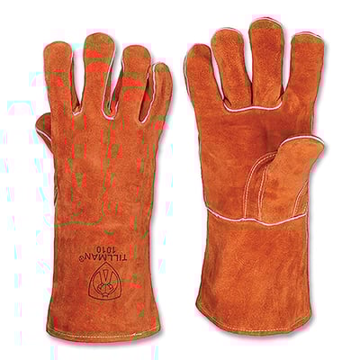 Loading product details...Stick Welding Gloves, 1012, Split Cowhide Palm/BOH/Cuff, Lg, Russet Brown, 14 in L Cuff