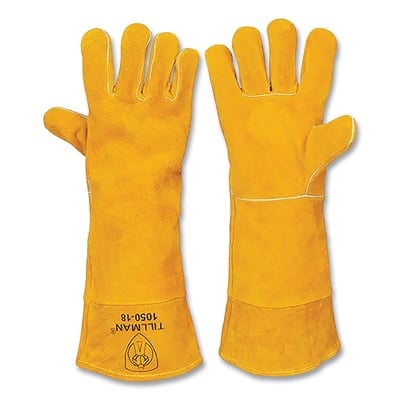 Loading product details...Stick Welding Gloves, 105018, Select Split Cowhide Palm/BOH/Cuff, Lg, Bourbon Brown, 18 in L Cuff